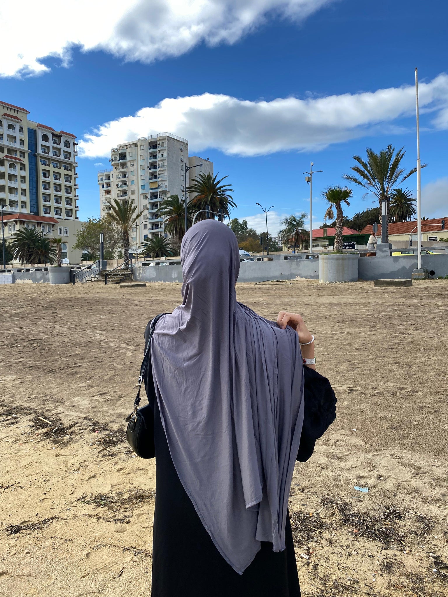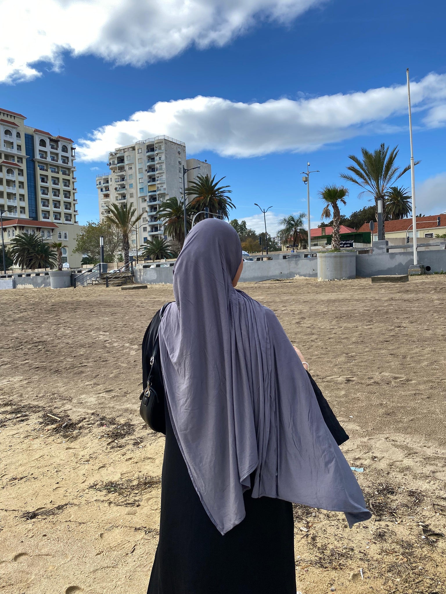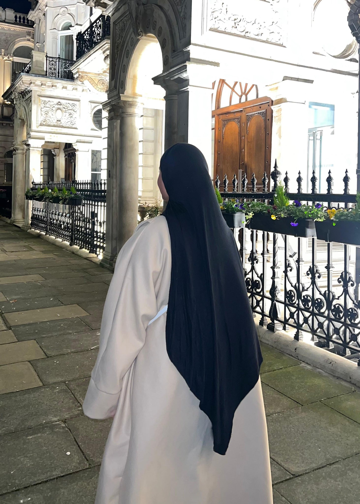 The fabric has a gentle 4 way stretch that stays in place without slipping, making it effortless to style. Fully opaque and comfortable for long wear, it can be worn without an undercap or pins, while still holding its shape throughout the day. Ideal for daily wear, work, travel, and even light activity.