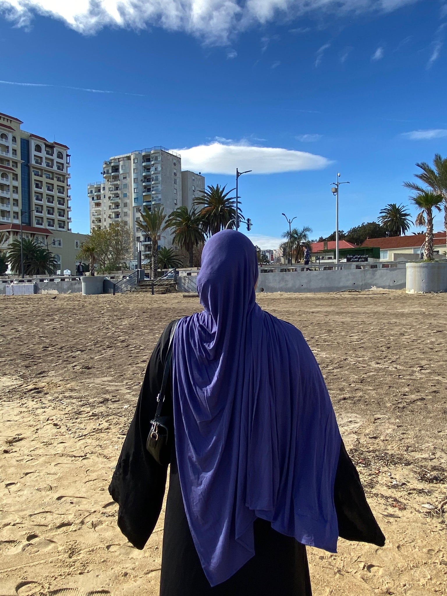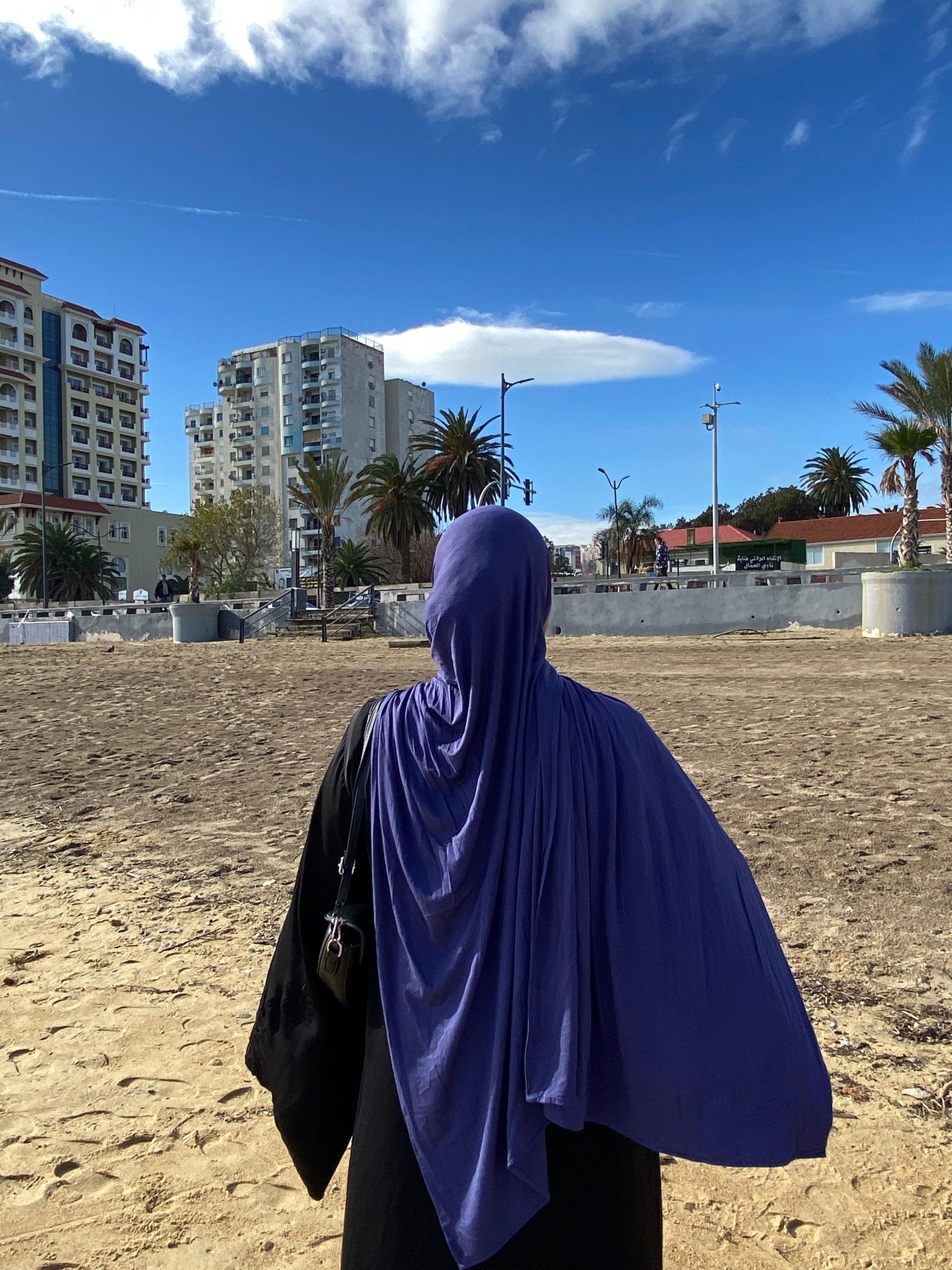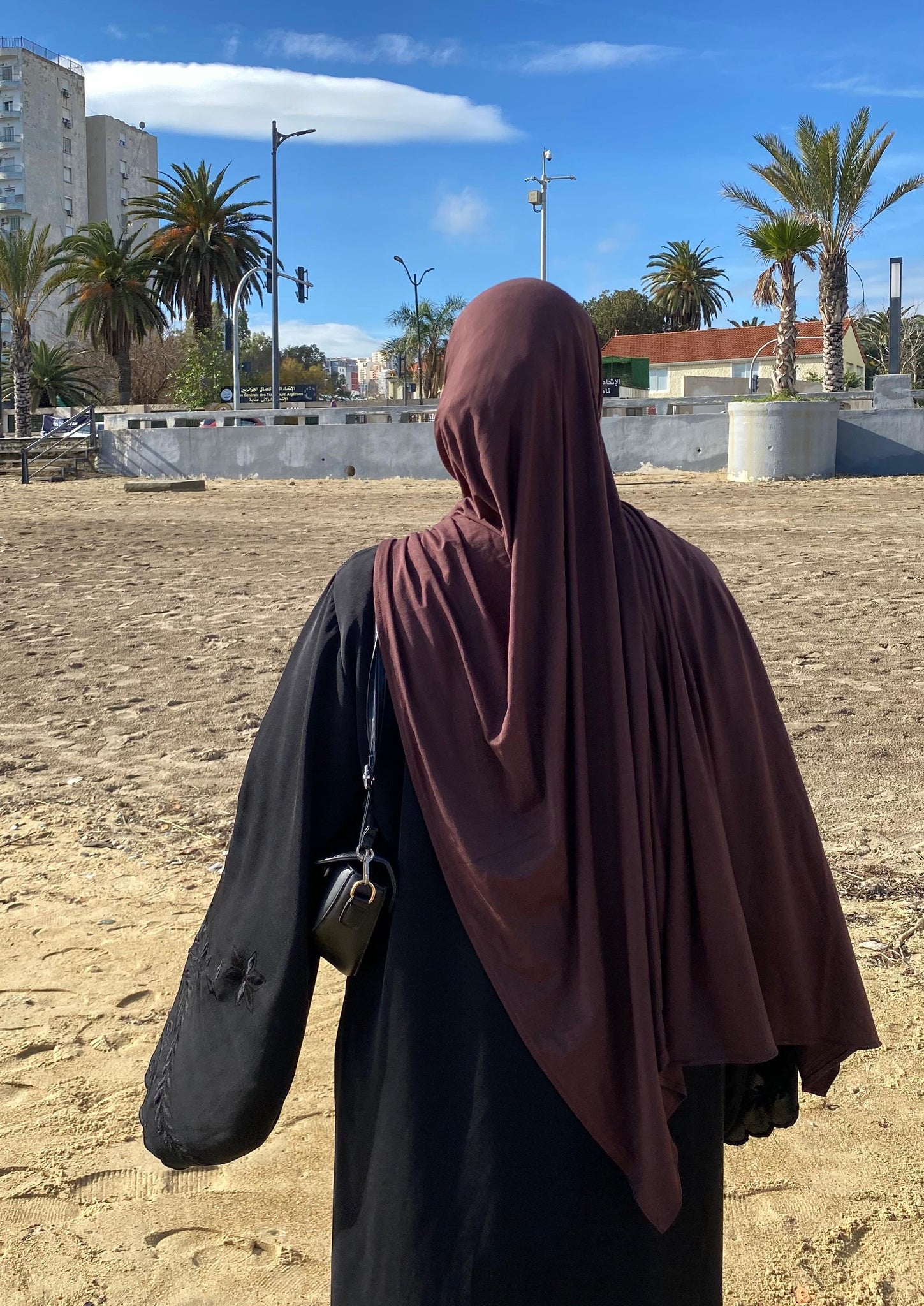 The fabric has a gentle 4 way stretch that stays in place without slipping, making it effortless to style. Fully opaque and comfortable for long wear, it can be worn without an undercap or pins, while still holding its shape throughout the day. Ideal for daily wear, work, travel, and even light activity.